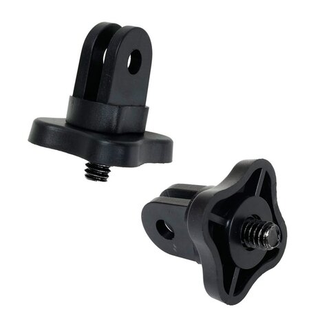 Adapter Adapter om iedere compactcamera of actioncam met standaard 1/4" schroefdraad aan een GoPro mount te bevestigen Zijde 1: Universele 1/4" (male) schroefdraad voor de bevestiging op uw camera. Zijde 2: GoPro aansluiting voor de bevestiging op alle accessoires met een GoPro aansluiting