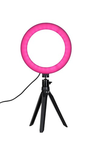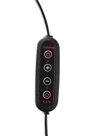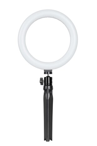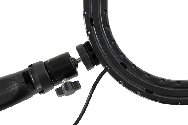 Deze compacte 12" (30 cm) RGB LED ringlamp is ideaal voor een verscheidenheid aan toepassingen, zoals vloggen, macrofotografie, productfotografie en video-opnames. De ringlamp komt vooral tot zijn recht bij portretfotografie, waar het zachte, schaduwloze licht een flatterende uitstraling biedt en zorgt voor prachtige reflecties in de ogen. De kit is plug-and-play, zodat u direct aan de slag kunt. Voeding De lamp kan eenvoudig worden van stroom voorzien via de USB-aansluiting. Bediening De lamp is te bedienen met de meegeleverde afstandsbediening, waarmee u eenvoudig de instellingen kunt aanpassen. Bevestiging Bevestig de lamp op het meegeleverde balhoofd, dat op een statief kan worden gedraaid, of bevestig de lamp direct op het statief voor extra stabiliteit en gebruiksgemak. Kleurtemperatuur De intensiteit en kleurtemperatuur van de lamp zijn naar wens in te stellen met de bedrade afstandsbediening of de draadloze remote. U heeft de keuze uit 26 vooringestelde lichteffecten, zodat u altijd de perfecte sfeer kunt creëren. Inhoud Ringlamp RGB 12" (30cm) Remote Statief Balhoofd USB voedingskabel met bediening Telefoonhouder Veiligheid De lamp is voorzien van een CE markering en is goedgekeurd voor de Europese markt.