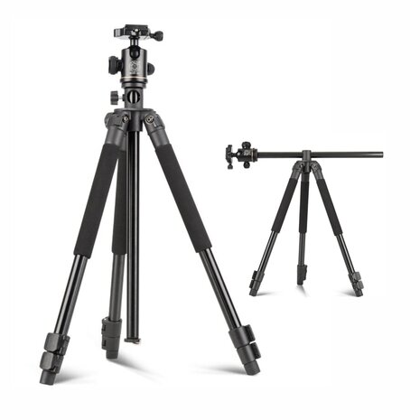 Aluminium Statief & Monopod type Q308H Statief Dit veelzijdige aluminium statief heeft 3 poten meteen Flip-Lock sluiting. Voor extra grip zijn de poten aan de onderkant voorzien van rubber voetjes. Middenkolom Dit statief heeft de mogelijkheid om de middenkolom zowel verticaal als horizontaal te bevestigen. U kunt de gewenste stand eenvoudig vastzetten d.m.v. de draaiknop aan de zijkant. De middenkolom heeft een 3/8"(male) schroefdraad voor de bevestiging van een balhoofd. Aan de onderkant van de middenkolom zit een uittrekbare haak voor de bevestiging van een contragewicht. Balhoofd Het meegeleverde balhoofd kan 360 graden draaien en 90 graden kantelen. U kunt de gewenste stand eenvoudig vastzetten d.m.v. de draaiknoppen aan de zijkant. Aan de bovenkant is het balhoofd voorzien van een quick release plate met een 1/4" (male) schroefdraad en anti-slip pad voor de bevestiging van uw camera. De onderkant van het balhoofd heeft een 3/8"(female) schroefdraad zodat deze perfect past op het statief/monopod. Verder is het balhoofd voorzien van een handige waterpas. Extra informatie Maximaal draagvermogen 5 kg Poten zijn voorzien van 3 secties De poten zijn voorzien van een foam handgreep. Handig kompas & waterpas aan de bovenkant van het statief Diameter balhoofd kogel: 36mm Makkelijk mee te nemen in meegeleverde opbergtas Materiaal: Aluminium Maximale hoogte: 160 cm Opgevouwen lengte: 50 cm Gewicht: 1,35 kg Type:Q308H