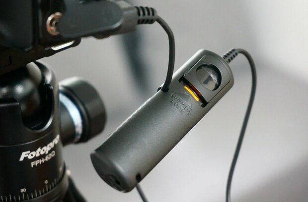 Afstandsbediening / Camera Remote Functies van de afstandsbediening Scherpstellen = knop half indrukken Foto maken = knop helemaal indrukken Camera in de Bulb stand: knop naar boven schuiven en vergrendelen. Als u de knop weer naar beneden schuift, wordt de foto gemaakt. Hierdoor is het dus mogelijk de belichtingstijd volledig naar wens in te stellen. Bevestigen De afstandsbediening is voorzien van een 110 cm lange kabel om de afstandsbediening te verbinden met uw camera.