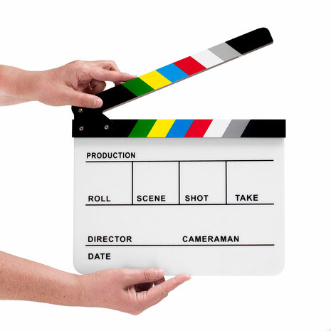 Zeer handig hulpmiddel voor filmmakers en videografen. Een filmklapper wordt voornamelijk gebruikt voor het synchroniseren van beeld en geluid