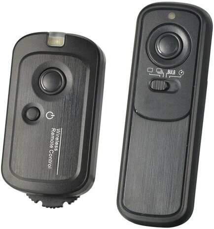 Draadloze Afstandsbediening Functies van de afstandsbediening Enkele foto maken Doorlopend foto's maken Foto maken met 4 seconden vertraging Foto's maken in de Bulb stand Bevestigen De ontvanger is voorzien van een 1/4" (female) schroefdraad & een hotshoe aansluiting. Met de meegeleverde kabel kunt u de ontvanger verbinden met uw camera. Afstandsbediening & ontvanger Draadloze verbinding tussen de afstandsbediening en de ontvanger met een frequentie van 2.4 GHz De set heeft een bereik van 100 meter en is instelbaar op 16 verschillende kanalen. Specificaties Bereik van 100 meter Instelbare kanalen: 16 kanalen Frequentie: 2.4 GHz Voeding per unit: 2x AAA Zender: 97mm x 33mm x 15mm / 21,8 gram Ontvanger: 66mm x 37.5mm x 28.5mm / 32,2 gram