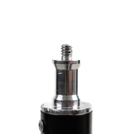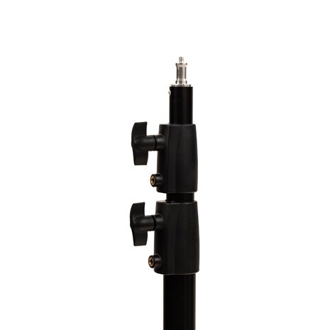 Dit lampstatief met zwenkwielen is de perfecte keuze voor gebruik van uw studioflitsers en speedlite flitsers. Het lampstatief is in hoogte verstelbaar, met een flexibele werkhoogte van 90 cm tot 280 cm. Veerdemping Het in hoogte verstelbare lampstatief bestaat uit secties met veerdemping, Deze interne veer dempt de val van de secties wanneer de vergrendeling wordt losgelaten, waardoor het risico op beschadiging wordt verminderd. Een veerdemping budgetvriendelijker dan luchtdrukdemping. Aansluitingen Aan de bovenkant is het lampstatief voorzien van een spigotaansluiting, inclusief een 1/4" schroefdraad, waardoor u gemakkelijk uw lamp of flitser kunt bevestigen. Dit maakt het statief geschikt voor een breed scala aan verlichtingsapparatuur. Naast het gebruik als lampstatief, kan dit statief ook dienen als basis voor een achtergrondsysteem of als reflectorhouder. Specificaties Maximale hoogte: 280 cm Minimale hoogte: 90 cm Lengte opgevouwen: 90 cm Maximaal draagvermogen: 5 kg Materiaal: Aluminium Gewicht: 2,2 kg