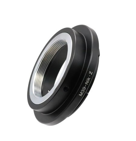 Body naar lens adapter Deze Lens Mount Adapter maakt het mogelijk om objectieven met een M39 aansluiting op een Nikon Z Body te gebruiken. Bevestiging Camera vatting: Nikon Z Objectief vatting: M39 De werking van alle automatische diafragma, auto focus en andere functies vervallen bij gebruik van deze converter.