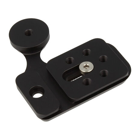 Specificaties: Lengte: 70mm Breedte: 82mm Materiaal: Aluminium Kleur: Zwart Statiefschroef: 1/4" Anti-slip pads voor extra stabiliteit