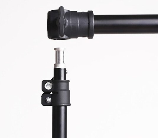 Deze uitschuifbare dwarsligger maakt van 2 (lamp)statieven eenvoudig een achtergrondhouder.
